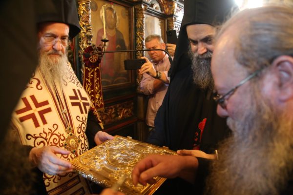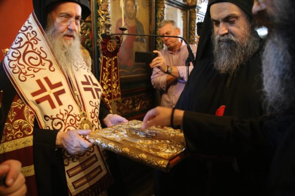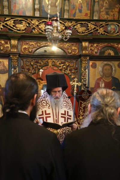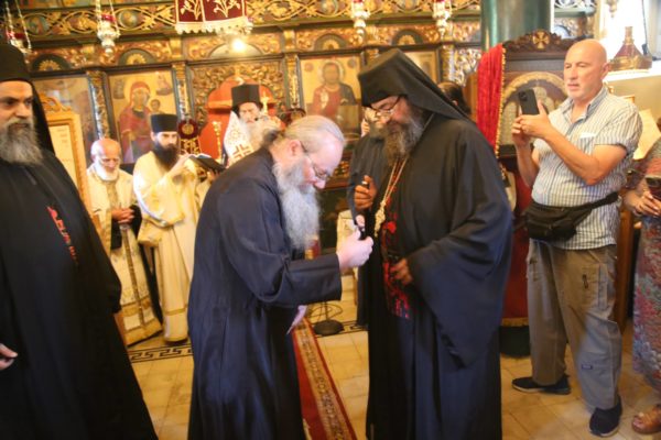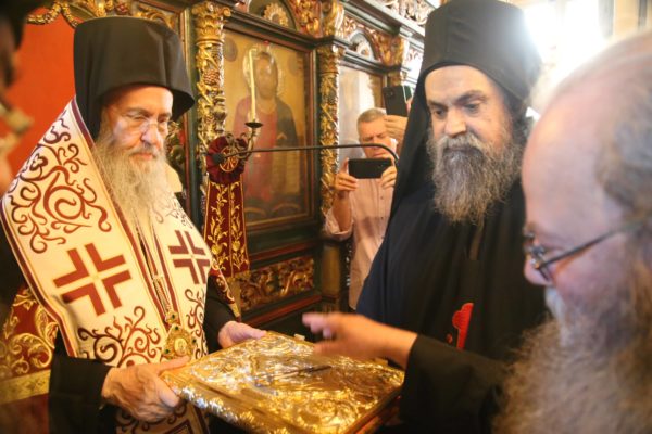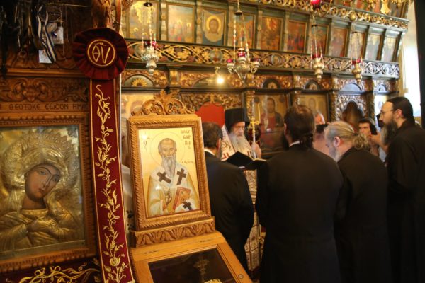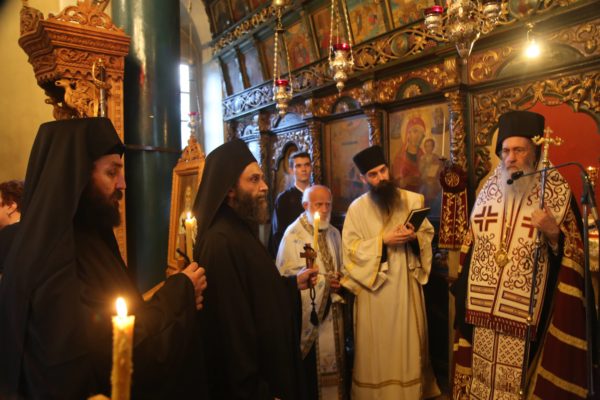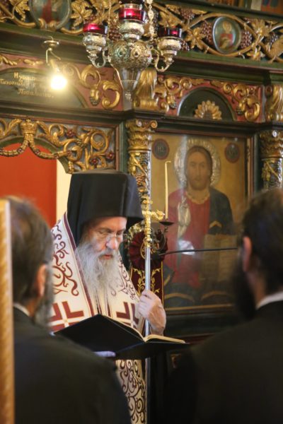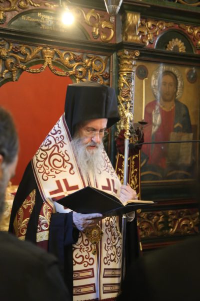 Ευχαρίστησε τον Ηγούμενο της Ιεράς Μονής, Αρχιμανδρίτη π. Πολύκαρπο Παστρωμά, τα μέλη της Ιεράς Μονής, από τα οποία ένα πρώην μέλος, ο ιερομόναχος Καλλίνικος, έγινε Μητροπολίτης Καστορίας, και ευχήθηκε να έχουν πνευματική έμπνευση, ενότητα, αγάπη, για να δοξάζεται ο Τριαδικός Θεός.