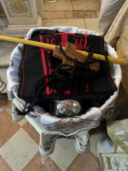 Στην διάρκεια της Θείας Λειτουργίας, ο Σεβασμιώτατος Μητροπολίτης κ. Νεκτάριος, έκειρε σε Μεγαλόσχημη Μοναχή, την Οσιολογιοτάτην μοναχήν Θεοκτίστη, προερχομένη από ιερατικήν και πολύτεκνην οικογένεια, του αειμνήστου π. Ανδρέα Σκούληκα, εκ Καλαμάτας, και την δόκιμη αδελφή Μαγδαληνή, περιεβάλλοντάς την με τον αραββώνα του μοναχικού σχήματος- ρασοευχή, δίδοντάς της το όνομα Μιχαηλία.
