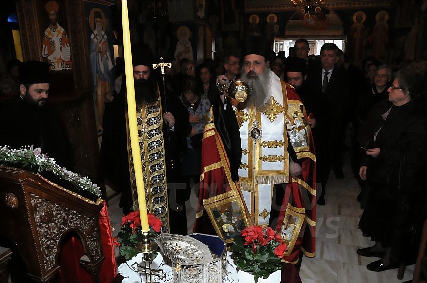 Στην συνέχεια τελέστηκε η ακολουθία της Α΄ στάσης των Χαιρετισμών της Υπεραγίας Θεοτόκου και θείο κήρυγμα από τον Σεβ. Μητροπολίτη κ. Θεόκλητο. Οι σημερινές εκδηλώσεις έκλεισαν με την παράκληση προς τους Αγίους .