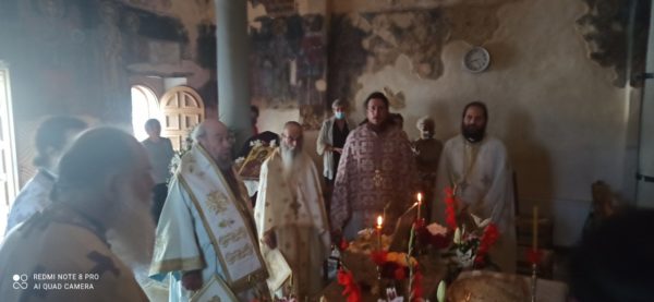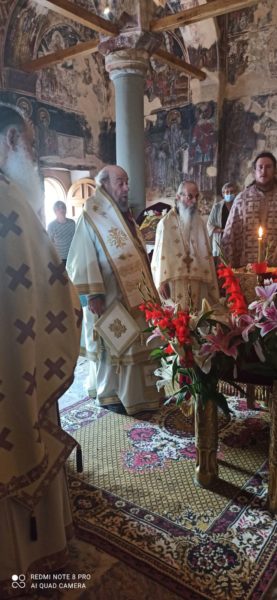 Με τον Σεβασμιώτατο συλλειτούργησε πο Πρωτοσύγκελλος Πανοσ. Αρχιμ. Νικόδημος Πόγκας με τους αδελφούς της ιεράς μονής τον Πανοσ. Αρχιμ. Νικόδημο Γιαννακόπουλο Ηγούμενο της ιεράς μονής και γέροντος της ιεράς μονής Μεταμορφώσεως του Σωτήρος Κύμης τους Πανοσ Αρχιμ Γεράσιμο Παρίση Νεκτάριο Καπενή Αρσένιο Τριανταφύλλου τον Πρωτοπρ Ευάγγελο Βογιατζή εφημέριο Αγίου Ιωάννου Αλιβερίου και τους Διακόνους Στυλιανό Πεταχτή και Πρόδρομο Γκέγκε.