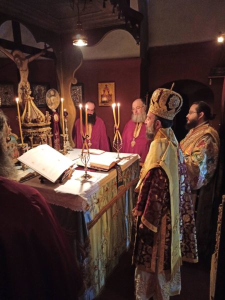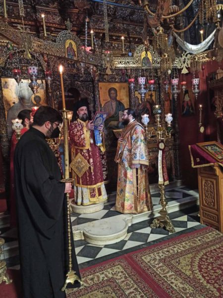 Ο Σεβασμιώτατος Μητροπολίτης Θήρας, Αμοργού και Νήσων κ. Αμφιλόχιος χοροστάτησε στον όρθρο και προεξήρχε της Θείας Λειτουργίας στην Ιερά Μονή Προφήτου Ηλιού Θήρας, την Κυριακή της Τυρινής 6 Μαρτίου 2022.