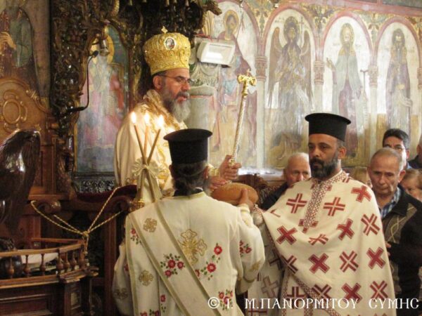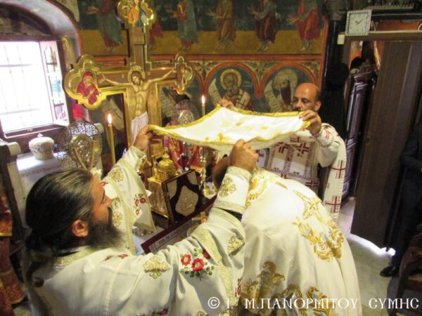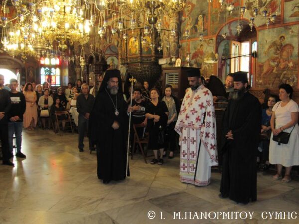 Ὁ Σεβασμιώτατος Σύμης δραττόμενος τῆς εὐλογημένης αὐτῆς εὐκαιρίας, ὁμίλησε πρός τούς πολυπληθεῖς πιστούς περί τοῦ διττοῦ θαύματος τῆς σημερινῆς Εὐαγγελικῆς περικοπῆς, ἐκείνου τῆς θεραπείας τῆς αἱμορροούσης γυναικός καί τῆς ἀναστάσεως τῆς θυγατρός τοῦ ἀρχισυναγώγου Ἰαείρου. Ἀνέλυσε διεξοδικῶς τά κρυμένα θεολογικά νοήματα, ἐπισημαίνοντας ὅτι ὁ Κύριος βράβευσε ἀρχικῶς τὴν πίστη τῆς γυναίκας ἐνώπιον ὅλου τοῦ πλήθους θεραπεύοντας αὐτήν, ὡς «ἰατρὸς τῶν ψυχῶν καὶ τῶν σωμάτων».