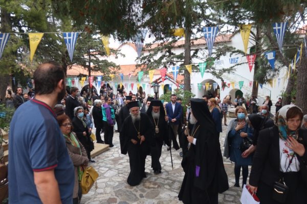 Τους Αρχιερείς υπεδέχθη και καλωσόρισε με εγκαρδιότητα και σεβασμό η Ηγουμένη της Μονής Μοναχή Μακαρία.