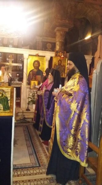 Κατά το πέρας του Κατανυκτικού Εσπερινού, εψάλη ο Κανών εις απειλήν λοιμικής ασθενείας, λιτανεύθησαν πέριξ του Καθολικού τα τιμαλφέστατα φυλασσόμενα Ιερά Λείψανα και τελέσθηκε Δέηση, κατά την οποίαν ο Θεοφιλέστατος ανέγνωσε την σχετική Ευχή του Αγίου Καλλίστου Κπόλεως εκ του Μεγάλου Ευχολογίου, ευχηθείς εκ καρδίας την ταχυτέραν δυνατόν κατάπαυσιν της πανδημίας.