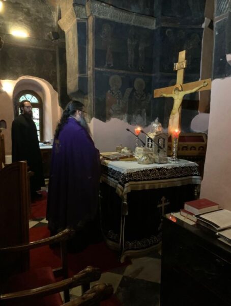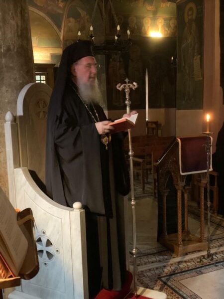 Κατά το πέρας του Κατανυκτικού Εσπερινού, εψάλη ο Κανών εις απειλήν λοιμικής ασθενείας, λιτανεύθησαν πέριξ του Καθολικού τα τιμαλφέστατα φυλασσόμενα Ιερά Λείψανα και τελέσθηκε Δέηση, κατά την οποίαν ο Θεοφιλέστατος ανέγνωσε την σχετική Ευχή του Αγίου Καλλίστου Κπόλεως εκ του Μεγάλου Ευχολογίου, ευχηθείς εκ καρδίας την ταχυτέραν δυνατόν κατάπαυσιν της πανδημίας.