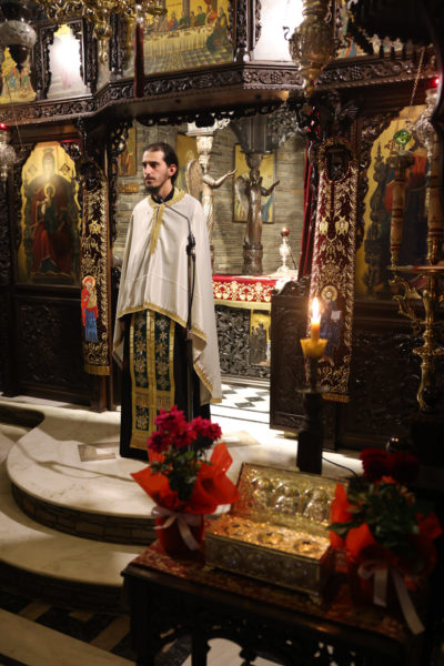 Τόσο στον Εσπερινό όσο και ανήμερα της Θείας Λειτουργίας οι πατέρες της Μονής έψαλλαν τιμητικά εκ της ιδιαιτέρας ασματικής ακολουθίας της Αγίας Ματρώνας.