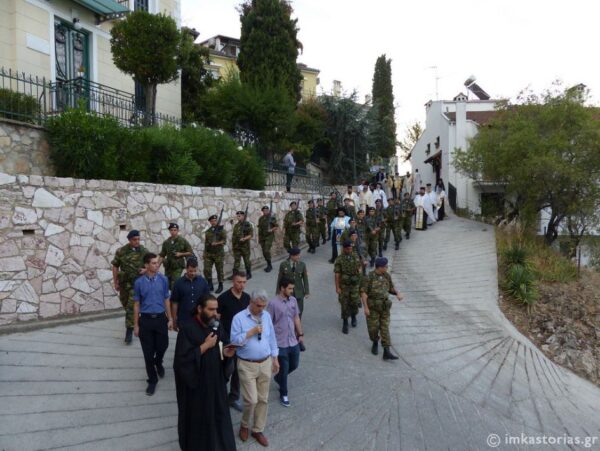 Στο τέλος του Εσπερινού ξεκίνησε η λιτανευτική πομπή της Εικόνος προς το Μοναστήρι επί στρατιωτικού οχήματος και την απόδοση των τιμών από άγημα του στρατού.