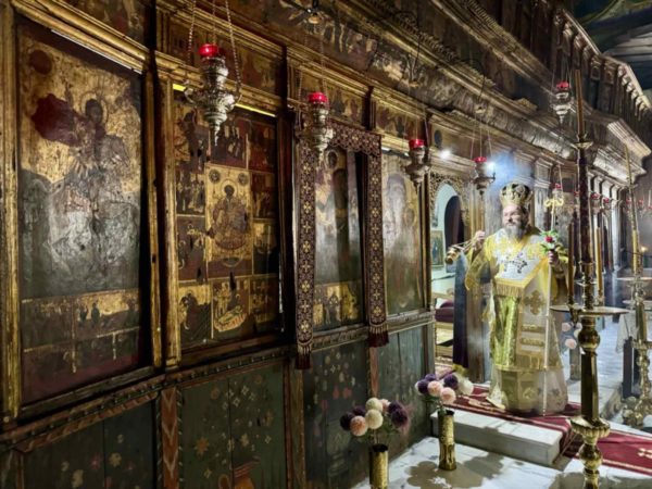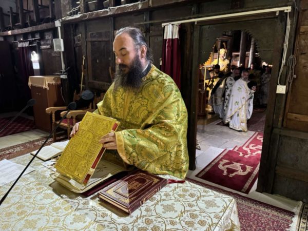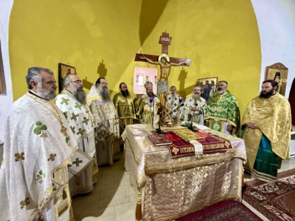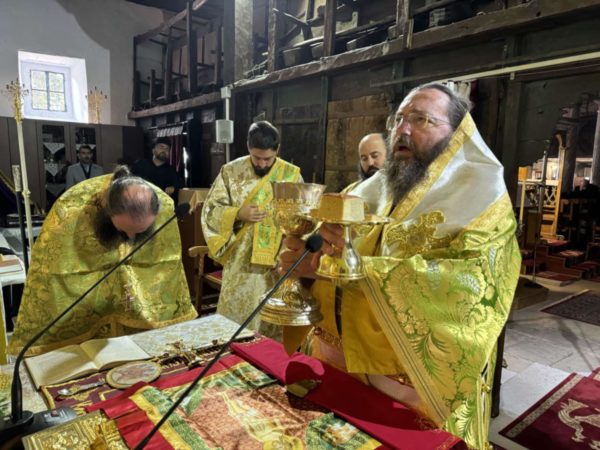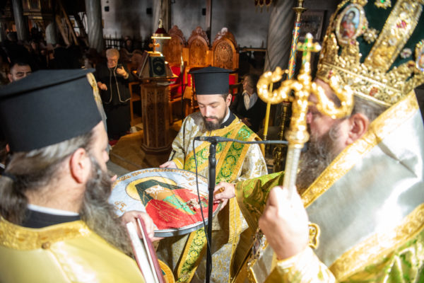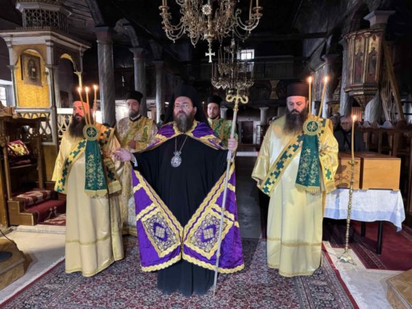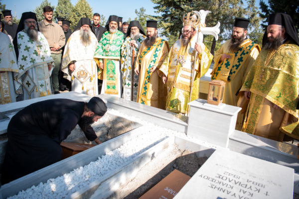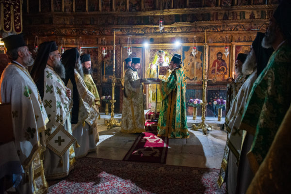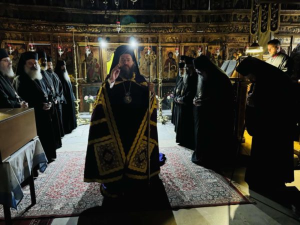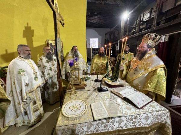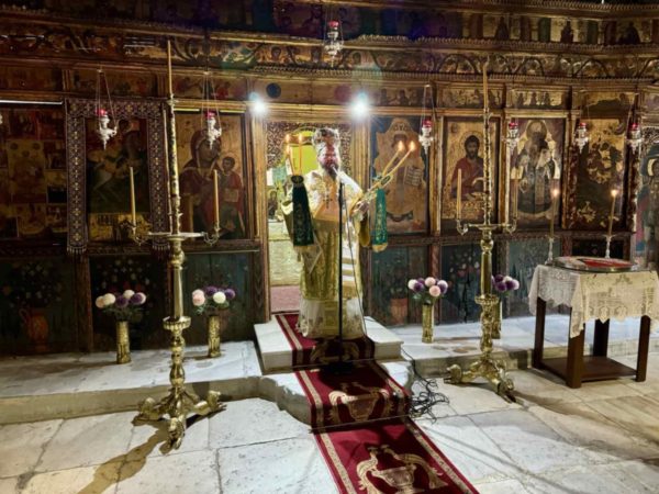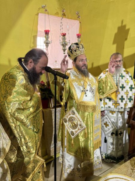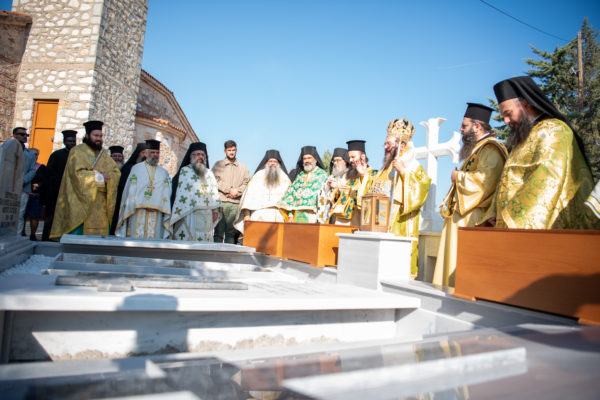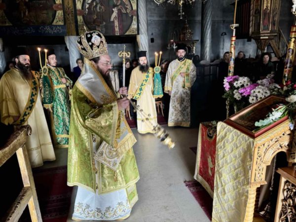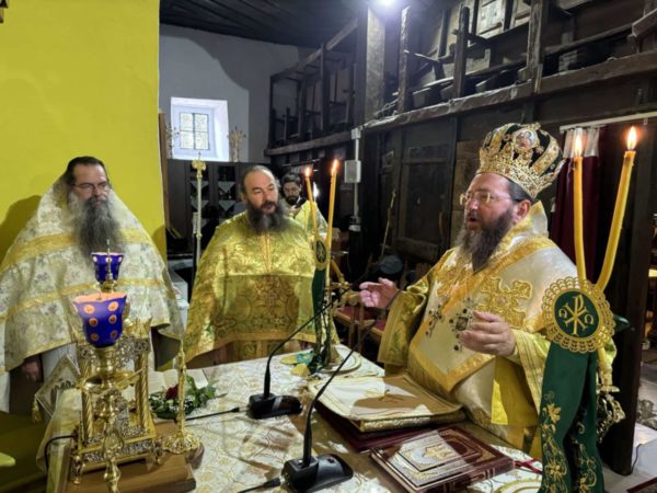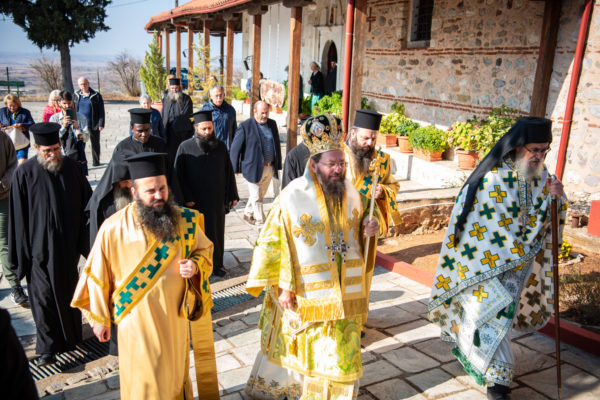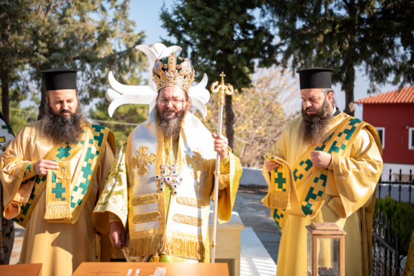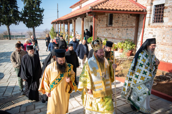 Τον Σεβασμιώτατο πλαισίωσαν ο Ηγούμενος της Μονής Παν. Αρχιμανδρίτης π. Αρσένιος Ιωάννου, ο Πρωτοσύγκελλος της τοπικής Μητροπόλεως Παν. Αρχιμανδρίτης π. Επιφάνιος Θεοδωρίδης, Ιερείς και Ιεροδιάκονοι, με την προσευχητική παρουσία πολλών πιστών.