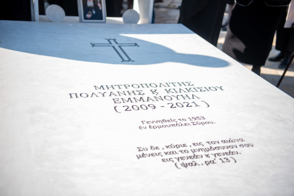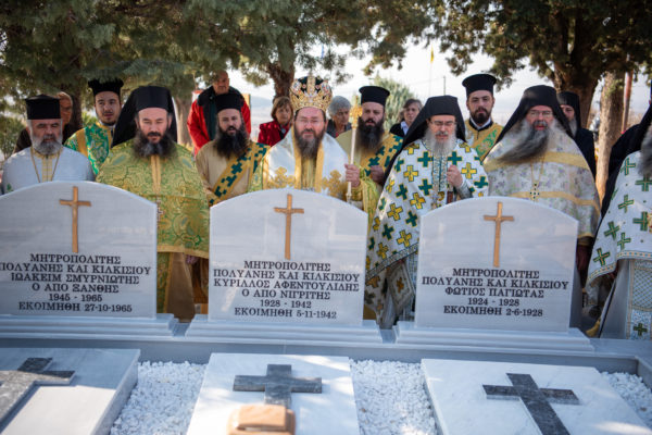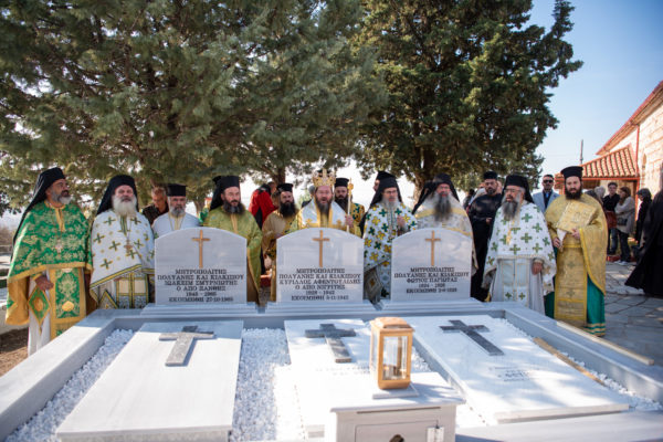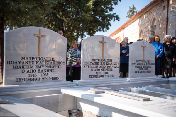 Ακολούθησε ο μετενταφιασμός των μακαριστών Μητροπολιτών Πολυανής και Κιλκισίου, Φωτίου (Παγιώτα), Κυρίλλου (Αφεντουλίδη) και Ιωακείμ του Β’ (Σμυρνιώτη) στον αύλειο χώρο του Καθολικού, πλησίον των τάφων των μακαριστών Μητροπολιτών Χαρίτωνος (Συμεωνίδη), Αποστόλου (Παπακωνσταντίνου) και Εμμανουήλ (Σιγάλα), στους οποίους τέλεσε τρισάγιο, ευχόμενος καλή ανάσταση.