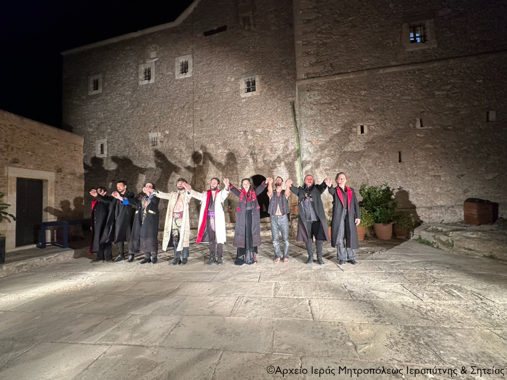 Το κοινό είχε τη μοναδική ευκαιρία να απολαύσει στον ειδυλλιακό χώρο της ιστορικής Μονής της Ανατολικής Κρήτης ένα από τα σημαντικότερα θεατρικά έργα του μεγάλου κρητικού στοχαστή Νίκου Καζαντζάκη, ένα υπαρξιακό-ποιητικό δράμα με ιστορικό φόντο.