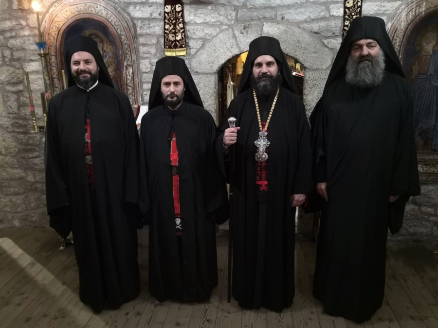 Τον Σεβασμιώτατο υποδέχθηκε ο Πρωτοσύγκελλος της Ιεράς Μητροπόλεως και Καθηγούμενος της Ιεράς Μονής Πανοσιολογιώτατος Αρχιμανδρίτης π. Αμφιλόχιος Παπανδρέου. Παρέστησαν συμπροσευχόμενοι οι Πανοσιολογιώτατος Αρχιμανδρίτης π. Μεθόδιος Κολοβός, Καθηγούμενος της ιεράς Μονής Παναγίας “Κορώνης” και ο Πανοσιολογιώτατος Αρχιμανδρίτης π. Θεόκλητος Δήμου, Καθηγούμενος της Ιεράς Μονής Γενεσίου της Θεοτόκου Πετρίλου καθώς και ιερείς της Ιεράς μας Μητροπόλεως.