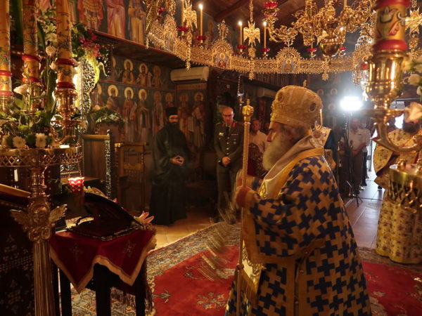 Στον Πανηγυρικό Όρθρο χοροστάτησε ο Συνοδικός Ιεράρχης, Μητροπολίτης Μάνης κ. Χρυσόστομος, ο οποίος προηξήρχε ακολούθως και στο Αρχιερατικό Συλλείτουργο, συνιερουργούντων του Επισκόπου Ρωγών κ. Φιλοθέου και του οικείου ιεράρχη επίσης Συνοδικού Ιεράρχη, Μητροπολίτη Φθιώτιδος κ. Συμεών.