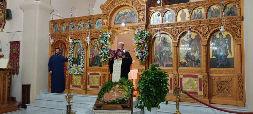 Το εσπέρας της Εορτής, τελέστηκε ο μεθέορτος εσπερινός, στον οποίο χοροστάτησε ο Σεβ. Μητροπολίτης Αρκαλοχωρίου κ. Ανδρέας όπου τέλεσε και το κτητορικό μνημόσυνο.