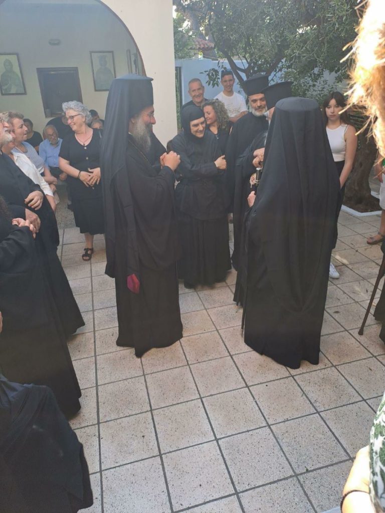 Ο Σεβασμιώτατος Μητροπολίτης Ρεθύμνης και Αυλοποτάμου κ. Πρόδρομος, κατόπιν ευγενικής προσκλήσεως και αδείας του Σεβασμιωτάτου Αρχιεπισκόπου Κρήτης κ. Ευγενίου, μετέβη την Κυριακή 25 Ιουνίου 2023, στο Ιερό Ησυχαστήριο Αγίων Θεοδώρων της Ιεράς Αρχιεπισκοπής Κρήτης, όπου χοροστάτησε κατά τον Εσπερινό και τέλεσε την Ακολουθία της Μοναχικής Αποκάρσεως της Γεωργίας Ξενάκη, κατά σάρκα συγγενούς αυτού, η οποία μετονομάσθηκε σε Αγάθη Μοναχή.