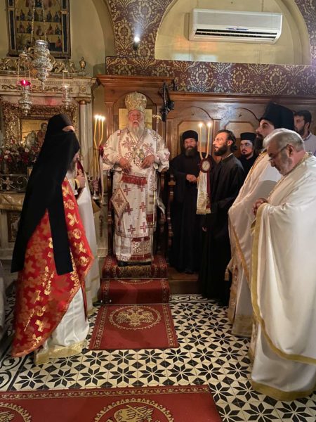 Ολονύκτιος αγρυπνία έγινε κατά τον μοναστηριακό Σαββαΐτικο τυπικό στην Ιερά Μονή των Αγίων Θεοδώρων την 26ην Αυγούστου, εορτή του Οσίου Ποιμένος του Μεγάλου και του Αγίου Μεγαλομάρτυρος Φανουρίου του νεοφανούς. Κατά την Θεία λειτουργία της ιεράς αγρυπνίας, ο Σεβασμιώτατος Μητροπολίτης Κερκύρας, Παξών & Διαποντίων νήσων κ. Νεκτάριος, μέσα στο κατανυκτικό και μοναστηριακό κλίμα έκειρε εις μεγαλόσχημο μοναχό τον αρχιδιάκονό του, π. Χριστόδουλον Τριαντάφυλλον.