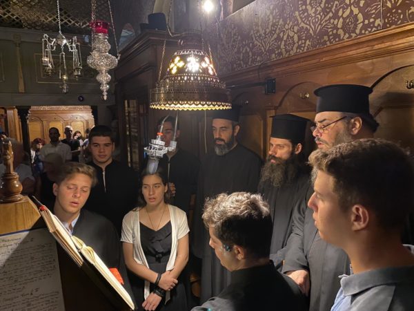 Στην αγρυπνία έψαλλαν οι πατέρες, π. Νεκτάριος Μπόκος, όπου είναι καθηγητής της σχολής βυζαντινής μουσικής της Ιεράς Μητροπόλεως Κέρκυρας με πολλούς μαθητές του, ως και ο αρχιερατικός επίτροπος π. Νικόλαος Μοναστηριώτης.