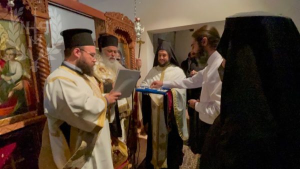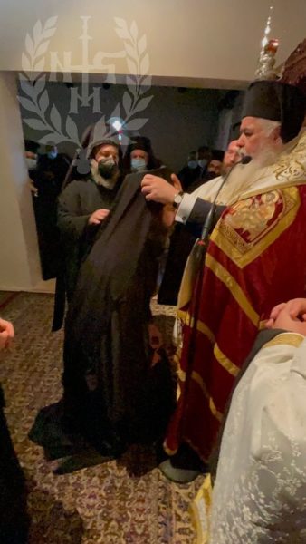 Ευχήθηκε δε στον νέο μοναχό, ο προστάτης του Άγιος Σεραφείμ να τον σκεπάζει πάντοτε στη ζωή του, να είναι φωτεινός οδοδείκτης στην ιερατική του πορεία και να τον ενισχύει στον πνευματικό του αγώνα.