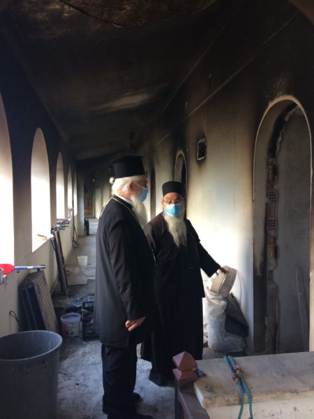 Επίσης, επισκέφθηκε την Ιερά Μονή Αγίου Ιωάννου Μακρυνού Μεγάρων με την πολυμελή γυναικεία αδελφότητα, που κι αυτή δοκιμάστηκε από την μανία της φωτιάς.