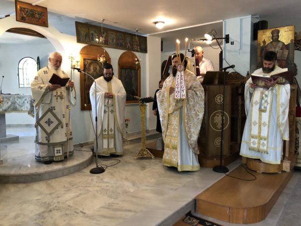 Μετά τη Θεία Λειτουργία ο Σεβασμιώτατος συνεργάστηκε με τους Επιτρόπους σχετικά με θέματα του Ναού, ο οποίος λειτουργεί στον υπόγειο χώρο, αφού ο κυρίως Ναός δεν έχει αποπερατωθεί.