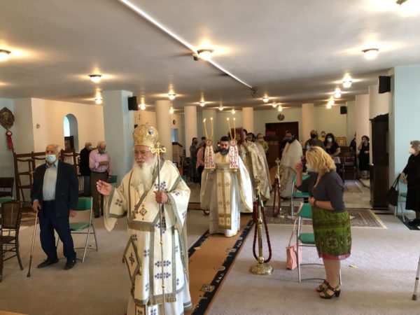 Μετά τη Θεία Λειτουργία ο Σεβασμιώτατος συνεργάστηκε με τους Επιτρόπους σχετικά με θέματα του Ναού, ο οποίος λειτουργεί στον υπόγειο χώρο, αφού ο κυρίως Ναός δεν έχει αποπερατωθεί.