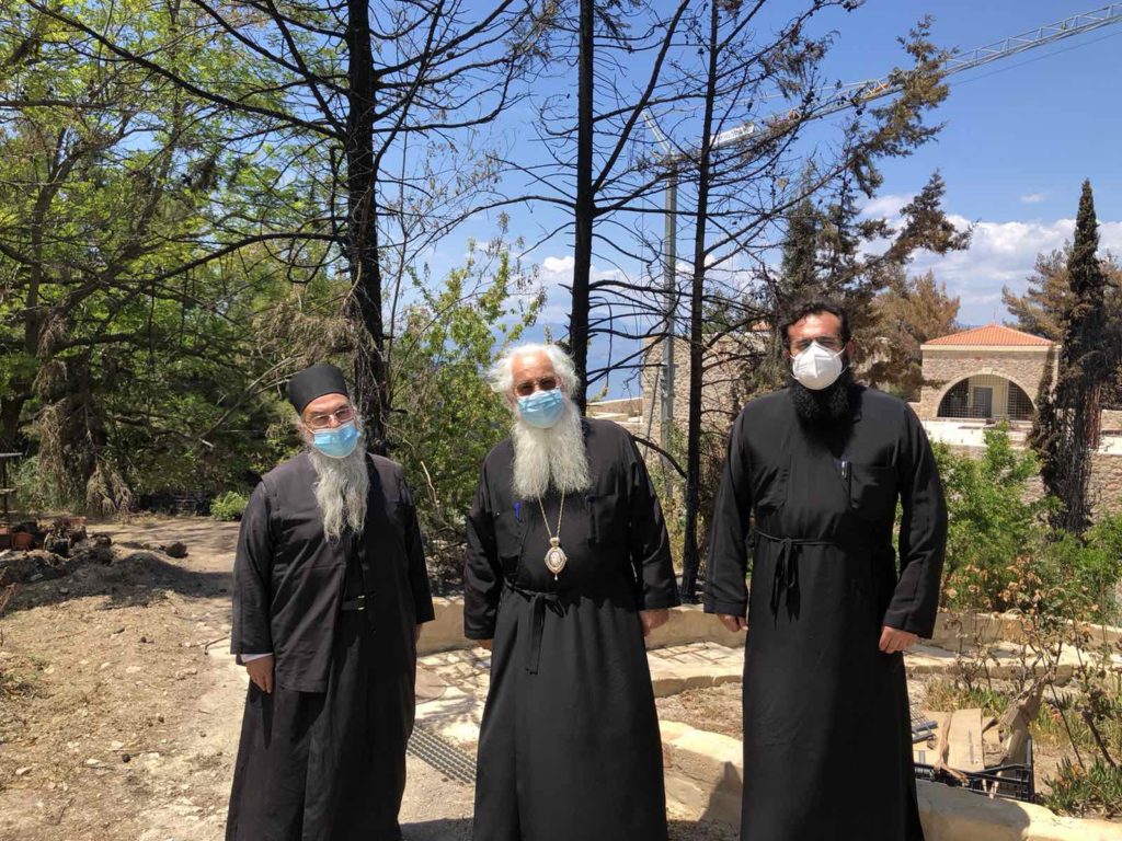 Επίσης, επισκέφθηκε την Ιερά Μονή Αγίου Ιωάννου Μακρυνού Μεγάρων με την πολυμελή γυναικεία αδελφότητα, που κι αυτή δοκιμάστηκε από την μανία της φωτιάς.