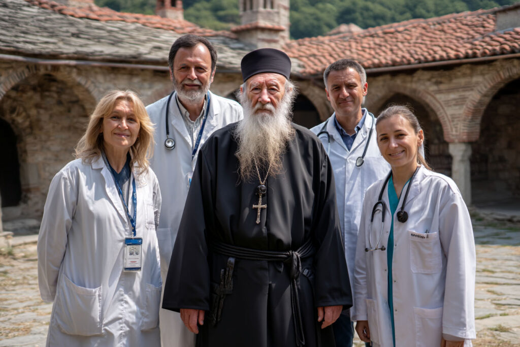 Το σχετικό δημοσίευμα, φέρει τον “Ηγούμενο της Μονής” να δίνει συνέντευξη ενημερώνοντας για την ανακάλυψη της θαυματουργής θεραπείας ενώ παρουσιάζει και φωτογραφίες του – προϊόν Τεχνητής Νοημοσύνης – με γιατρούς.