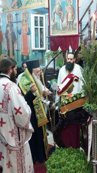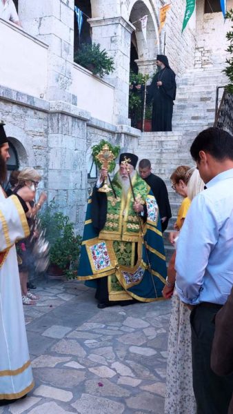 Ο Σεβασμιώτατος Μητροπολίτης Σάμου, Ικαρίας και Κορσεών κ. Ευσέβιος της καθόδου του Τιμίου Ξύλου από το Σκευοφυλάκιο της Ιεράς Μονής, χοροστάτησε στον Αρχιερατικό Πανηγυρικό Εσπερινό, κήρυξε το θείο λόγο και ευχαρίστησε τον Καθηγούμενο της Ιεράς Μονής Αρχιμανδρίτη π. Μακάριο Δελιογλάνη και τους αδελφούς και πατέρες της Ιεράς Μονής για την προετοιμασία της Πανηγύρεως.