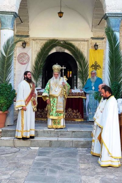 Με κατάνυξη εορτάστηκε η Ύψωση του Τιμίου Σταυρού στην “πληγωμένη” από τον σεισμό της 30ης Οκτωβρίου 2020 Ιερά Μονή Μεγάλου Σταυρού Σάμου, χτισμένη το 1592, όπου φυλάσσεται Σταυρός με Τίμιο Ξύλο πολύτιμο κειμήλιο και θυσαυρός της Τοπικής Εκκλησίας δώρο του Σαμίου Πατριάρχου Ιεροσολύμων Κυρίλλου του Β’ (1815).