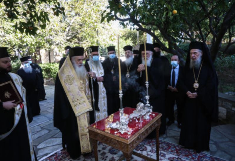 Ακολούθως, ο Αρχιεπίσκοπος Αθηνών και Πάσης Ελλάδος κ.κ. Ιερώνυμος, συνεχάρη τον Ηγούμενο και τους πατέρες, με τα έξοδα των οποίων έγινε το εν λόγω έργο και αναφέρθηκε στην σημαντική ιστορία και προσφορά της Μονής. Ο Μακαριώτατος χαρακτήρισε ως εκδήλωση τιμής και αγάπης την ανέγερση του συγκεκριμένου μνημείου από νεότερους πατέρες, ενώ τους ευχήθηκε να συνεχίσουν το δρόμο σε αυτό το ιστορικό μοναστήρι με αυτά τα αισθήματα της προσφοράς, της αγάπης και της θυσίας.