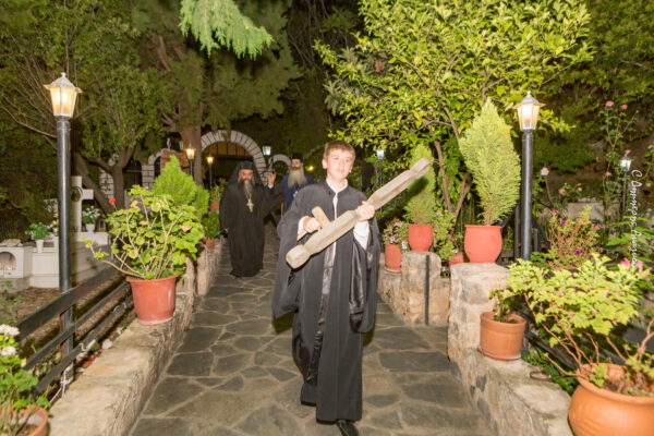 Εύχομαι ολόψυχα και ολοκάρδια στον αγαπητό μου αδελφό και συνοδοιπόρο, Άγιο Καθηγούμενο της Μονής και Πρωτοσύγκελλο της Μητροπόλεως μας, στον π. Άγγελο, στον επίγειο άγγελο της ειρήνης και της διακονίας, στους Πατέρες και σε όλους σας, η αγάπη του Χριστού να μας φυλάγει όλους, να φωτίσει την αλήθεια του καθενός μας, την ψυχή και την καρδιά μας. Εύχομαι και αυτό το μοναστήρι, όπως και όλα τα μοναστήρια της Μητροπόλεως μας, να αποτελέσει το διδασκαλείο του πολιτεύματος του Σταυρού για τους Πατέρες και για όλο τον κόσμο. Ο Σταυρός του Χριστού να αποτελεί για εμάς την πυξίδα της ζωής μας».