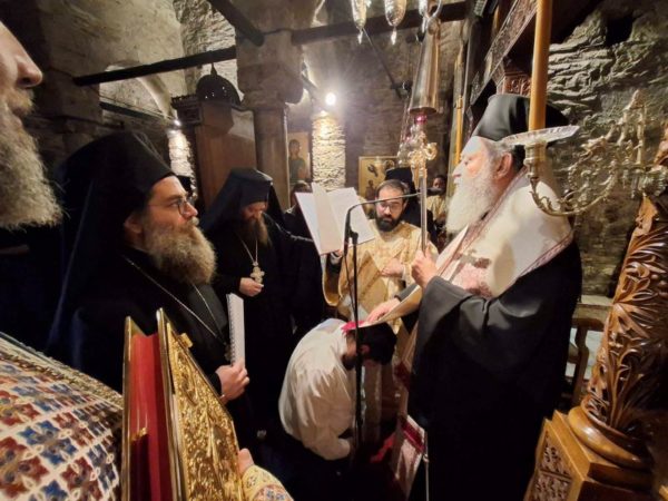 Τον Σεβασμιώτατο πλαισίωσαν οι Κληρικοί μέλη της αδελφότητας της Ι. Μονής, Κληρικοί της Χαλκίδος και της ευρύτερης περιοχής και πολλοί προσκυνητές της Ι. Μονής.