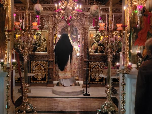 Το απόγευμα της Κυριακής στον μεθεόρτιο Εσπερινό λάμπρυναν με την τιμητική τους συμμετοχή και οι Καθηγούμενοι των Ιερών Μονών: Μεταμορφώσεως του Σωτήρος Μεγάλου Μετεώρου και Πρωτοσύγκελος της Ιεράς Μητροπόλεως Σταγών και Μετεώρων Γέροντας Νήφων, Μεταμορφώσεως του Σωτήρος Καμμένων Βούρλων Γέροντας Σεραφείμ, Παναγίας Κορώνης Γέροντας Μεθόδιος, Άνω Ξενιάς Αλμυρού Βόλου Γέροντας Νεκτάριος, Παναγίας Μακαριωτίσσης Γέροντας Θεοδόσιος, Οσίου Λουκά Στειρίου Γέροντας Σεραφείμ, με τις σεπτές τους συνοδείες, οι οποίοι διατηρούν σύνδεσμο φιλίας και φιλαδελφείας με τον Καθηγούμενο της Ιεράς Μονής του Αγίου Γεωργίου Γέροντα Σιλουανό και τους πατέρες.