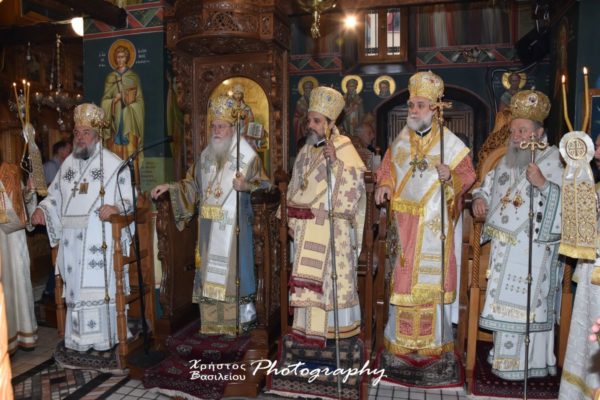 Στον Όρθρο χοροστάτησε ο Σεβασμιώτατος Μητροπολίτης Γόρτυνος και Μεγαλοπόλεως κ. Νικηφόρος, και του αρχιερατικού συλλειτούργου προέστη ο Σεβασμιώτατος Μητροπολίτης Κορίνθου κ. Διονύσιος συμπαραστατούμενος από τον Σεβασμιώτατο Μητροπολίτη Γόρτυνος κ. Νικηφόρο, τους Θεοφιλεστάτους Επισκόπους Μυρίνης κ. Αθηναγόρα (εκ του Οικουμενικού Πατριαρχείου) και Σκοπέλου κ. Νικόδημο και τον Σεβασμιώτατο Μητροπολίτη Χαλκίδος κ. Χρυσόστομο, με τη συμμετοχή Ιερέων και Διακόνων, αδελφών της Ι. Μονής, εφημερίων της Αρχιερατικής Περιφερείας Αιγαίων και παρεπιδήμων.
