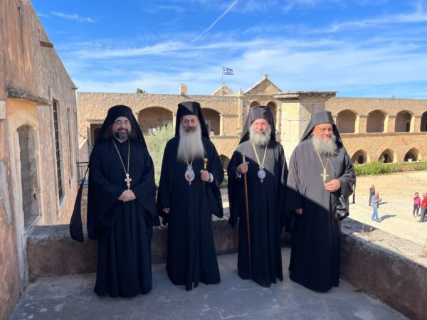 Κατόπιν προσκλήσεως του Σεβασμιωτάτου Μητροπολίτου Ρεθύμνης και Αυλοποτάμου κ. Προδρόμου, προσήλθε και προέστη των εορταστικών εκδηλώσεων ο Σεβασμιώτατος Μητροπολίτης Φθιώτιδος κ. Συμεών, ο οποίος χοροστάτησε κατά τον Όρθρο της Εορτής της Συνάξεως των Αρχιστρατήγων Μιχαήλ και Γαβριήλ και των λοιπών Ασωμάτων Δυνάμεων, στο ιστορικό Καθολικό της Ιεράς Μονής Αρκαδίου, και ακολούθως προεξήρχε της Δισαρχιερατικής Θείας Λειτουργίας, συλλειτουργούντος του Σεβασμιωτάτου Μητροπολίτη Ρεθύμνης και Αυλοποτάμου κ. Προδρόμου.