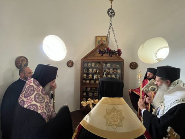 Μετά το πέρας της Θείας Λειτουργίας, ο Σεβασμιώτατος Μτροπολίτης κ. Συμεών τέλεσε Τρισάγιο στην ιστορική, ηρωική και μαρτυρική Πυριτιδαποθήκη του Αρκαδίου, μνημονεύοντας όλους τους Ήρωες προπάτορές μας με αισθήματα συγκίνησης και ευγνωμοσύνης.