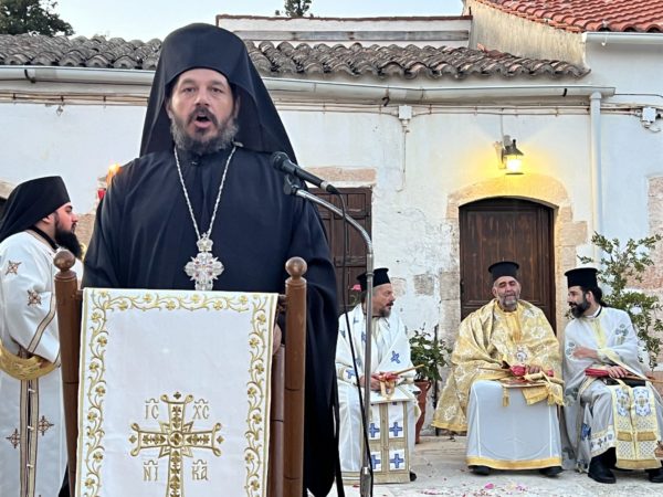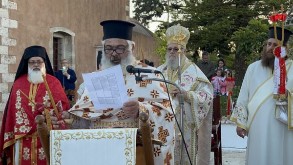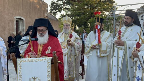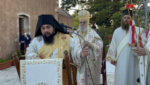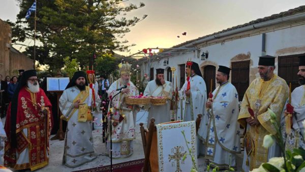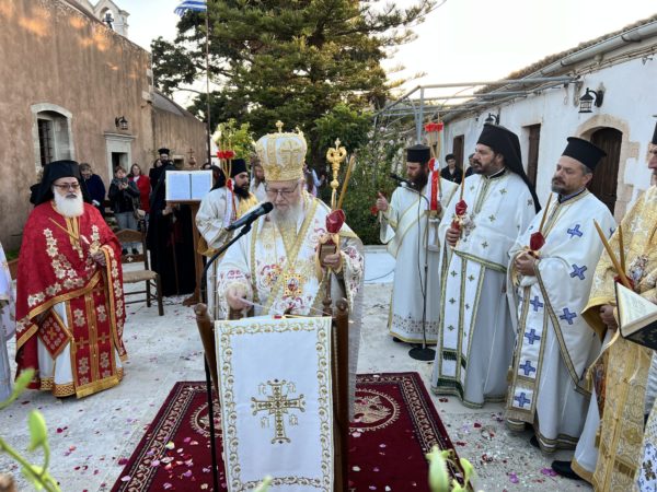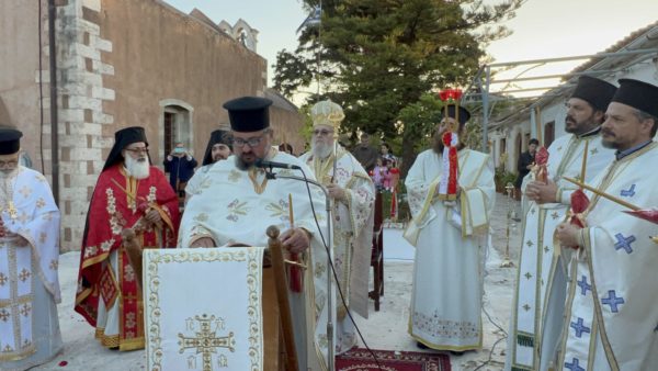 Στον Εσπερινό προεξήρχε ο Σεβασμιώτατος Μητροπολίτης Κυδωνίας και Αποκορώνου κ. Δαμασκηνός περιστοιχιζόμενος από τον Πρωτοσύγκελλο της Μητροπόλεως Παν/το Αρχιμ. Νικηφόρο Εικοσιδέκα, τον Καθηγούμενο της Ιεράς Πατριαρχικής και Σταυροπηγιακής Μονής Αγίας Τριάδος των Τζαγκαρόλων Παν/το Αρχιμ. του Οικουμενικού Θρόνου Αμφιλόχιο Παπαγιαννάκη, Κληρικούς της Μητροπόλεως, συμπροσευχουμένων της Καθηγουμένης της Μονής Γερόντισσας Θεοφόρας μετά της αδελφότητος και πλήθους ευσεβών προσκυνητών.