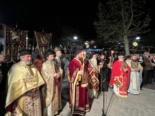 Κατόπιν, ο Σεβασμιώτατος χοροστάτησε στην Ακολουθία του Επιταφίου στον Ιερό Μητροπολιτικό Ναό Εισοδίων της Θεοτόκου Λεβαδείας. Στη συνέχεια πραγματοποιήθηκε η περιφορά του Επιταφίου στους κεντρικούς δρόμους της πόλεως, καθώς και η συνάντηση με τους Επιταφίους του Ιερού Ναού Αγίου Γεωργίου και του Ιερού Ναού Ευαγγελισμού της Θεοτόκου στην κεντρική πλατεία Λεβαδείας. Ο Σεβασμιώτατος ευχήθηκε σε όλους τους πιστούς Καλή Ανάσταση με υγεία και δύναμη.