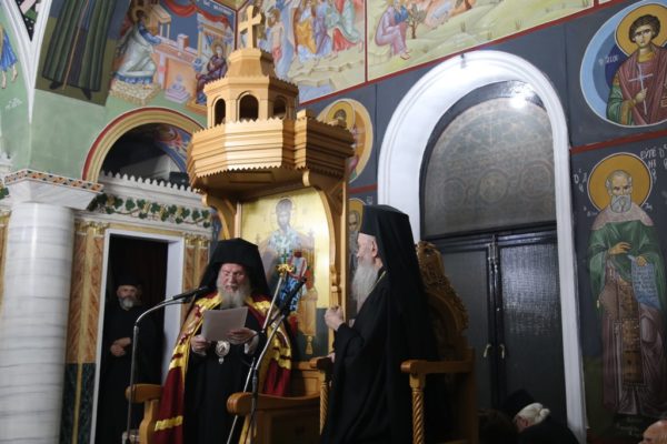 Στην ακολουθία του Εσπερινού, στο Καθολικό της Μονής, χοροστάτησε ο Θεοφιλέστατος Επίσκοπος Ευκαρπίας κ. Ιερόθεος και συγχοροστάτησε ο Σεβασμιώτατος Τοποτηρητής της Ιεράς Μητροπόλεως Αιτωλίας και Ακαρνανίας, Μητροπολίτης Ναυπάκτου και Αγίου Βλασίου κ. Ιερόθεος.