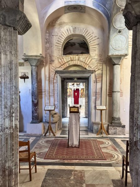 Στη συνέχεια, επισκέφθηκαν την Νέα Μονή Χίου. Αυτοκρατορική Βυζαντινή Ιερά Μονή του 11ου αιώνα, που χτίστηκε με αυτοκρατορικές χορηγίες. Η Ζωή και η Θεοδώρα, κόρες του βυζαντινού αυτοκράτορα Κωνσταντίνου Η΄ και ανηψιές του Βασιλείου Β΄ του Βουλγαροκτόνου, καθώς και ο αυτοκράτωρ Κωνσταντίνος Θ΄ ο Μονομάχος, τρίτος σύζυγος της Ζωής, στάθηκαν οι χορηγοί για την κατασκευή του μνημείου. Στο μοναστήρι αυτό έγινε και η μοναχική κουρά του Αγίου Νεκταρίου Επισκόπου Πενταπόλεως.