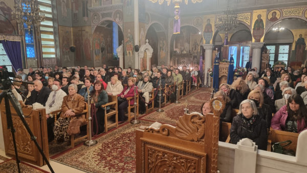 Ο Ιερός Ναός είχε κατακλιστεί από νωρίς από τους πιστούς όπου προσήλθαν για να ακούσουν το κήρυγμα του Γέροντα Νεκταρίου για ψυχική ενδυνάμωση εν μέσω της Αγίας και Μεγάλης Τεσσαρακοστής προ του Πάσχα.