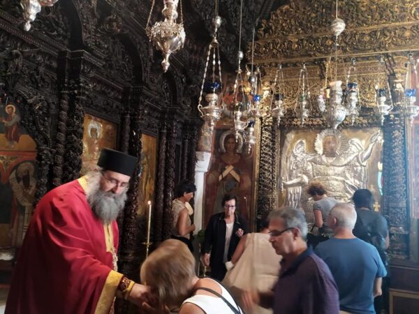 Θεία λειτουργία τελέστηκε σήμερα, 29 Ιουλίου 2020, στην Ιερά Μονή Ταξιάρχου Μιχαήλ του Πανορμίτου της Ιεράς Μητροπόλεως Σύμης, Χάλκης Τήλου και Καστελλορίζου, ιερουργουντος του Καθηγουμένου της Ιεράς Μονής Ιβήρων Αγίου Όρους, Γέροντος Ναθαναήλ.