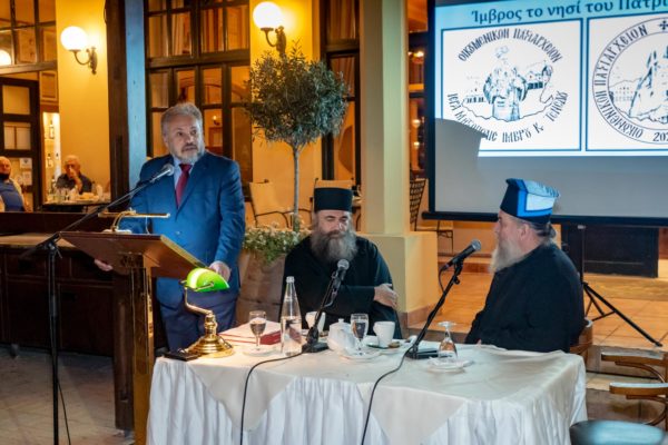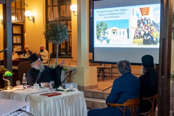 Στo πλαίσιo των εορτασμών προς τιμήν του Οσίου Ιωάννου ο Σεβασμιώτατος Μητροπολίτης Ίμβρου πραγματοποίησε το απόγευμα της Εορτής ομιλία αφιερωμένη στα 30 χρόνια Πατριαρχείας του Οικουμενικού Πατριάρχου κ.κ. Βαρθολομαίου, καθώς και στην ιδιαίτερη πατρίδα του Παναγιωτάτου, την Ίμβρο, στον κατάμεστο εξωτερικό χώρο του Ιστορικού Καφέ «Κήπος», στον Δημοτικό Κήπο Χανίων, στην οποία παρέστησαν οι Σεβασμιώτατοι Μητροπολίτες Κυδωνίας και Αποκορώνου κ.κ. Δαμασκηνός και Κισσάμου και Σελίνου κ.κ. Αμφιλόχιος.