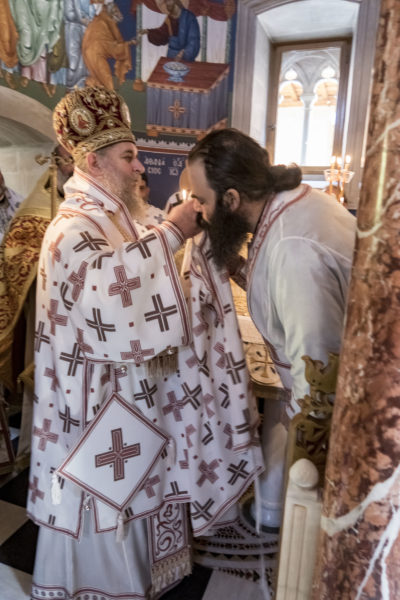 Τη φετινή πανήγυρη ευλόγησε με την παρουσία του ο Σεβασμιώτατος Μητροπολίτης Ίμβρου και Τενέδου κ.κ. Κύριλλος, ως εκπρόσωπος της Α.Θ.Π. του Οικουμενικού Πατριάρχου κ.κ. Βαρθολομαίου, ο οποίος προεξήρχε της πανηγυρικής Αγρυπνίας και της αρχιερατικής Θείας Λειτουργίας, κατά την οποία τέλεσε την εις πρεσβύτερον χειροτονία του εκ των αδελφών της Ιεράς Μονής, π. Ιακώβου, και χειροθέτησε σε ιεροψάλτη τον εξ Ίμβρου καταγόμενο κ. Δημοσθένη Ζορμπά, Υπαξιωματικό της Πολεμικής Αεροπορίας.