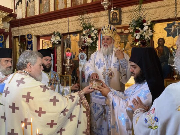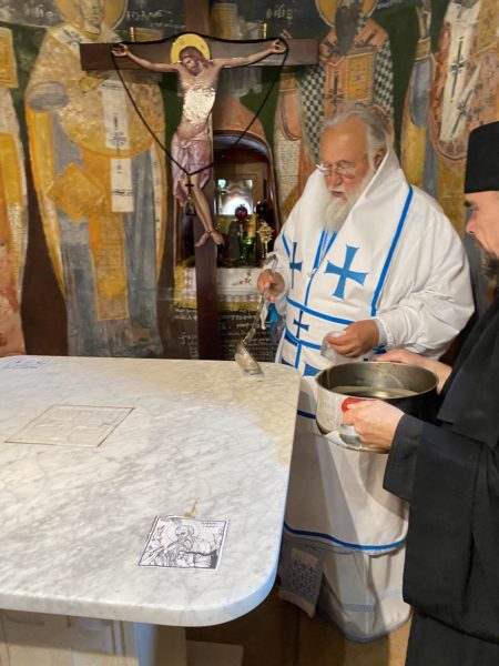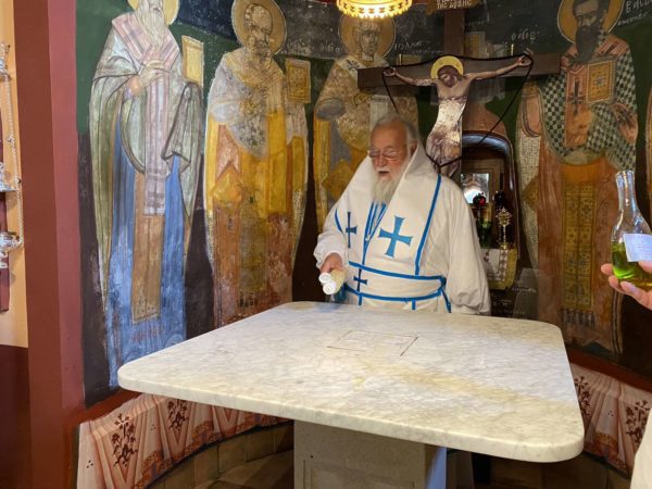 Χθες λοιπόν στην εορτή της Υπεραγίας Θεοτόκου που εορτάζει η Ιερά Μονή, ο Σεβασμιώτατος καθαγίασε το ιερό θυσιαστήριο που αντεκατεστάθη από το παλαιόν σεσαθρωμένον, τελώντας την ακολουθία επί διασαλεύση της Αγίας Τραπέζης. Στην διάρκεια όλης της τελετής ο Σεβασμιώτατος εξηγούσε στο πολυπληθές εκκλησίασμα της Ιεράς Μονής τα τελούμενα.
