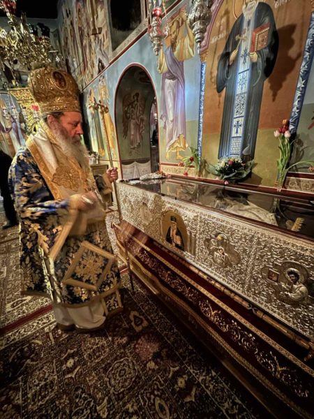 Ευρισκόμενος στην Φθιώτιδα για τον εορτασμό της 25ης Μαρτίου 2023 προσκεκλημένος υπό του Σεβασμιωτάτου Μητροπολίτου Φθιώτιδος κ. Συμεών, ο Θεοφιλέστατος Επίσκοπος Κερνίτσης κ. Χρύσανθος επισκέφθηκε προσκυνηματικώς την ιστορική Ιερά Μονή Κοιμήσεως της Θεοτόκου Αγάθωνος.