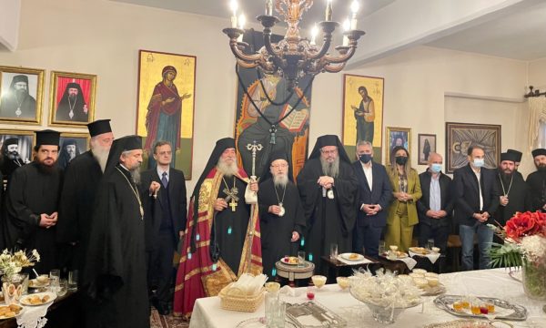 Στο αρχονταρίκι της μονής, όπου προσφέρθηκε το παραδοσιακό κέρασμα, παρουσία των μητροπολιτών Καρπενησίου κ. Γεωργίου, Αιτωλίας και Ακαρνανίας κ. Κοσμά και Λαρίσης και Τυρνάβου κ. Ιερωνύμου, της υφυπουργού Τουρισμού κ. Σοφίας Ζαχαράκη, του καθηγητή Αγιολογίας δρος Σωτήριου Μπαλατσούκα, εκπροσώπων των τοπικών αρχών, μοναχών από το Άγιο Όρος και Ι. Μονές της χώρας, κληρικών και πλήθους προσκυνητών, ο Θεσσαλός πολιτικός εξήρε τον χαρακτήρα και το αγωνιστικό φρόνημα του νέου ηγουμένου. Καθώς υπηρέτησε αρχικά στη μητρόπολη Δημητριάδος και Αλμυρού, αφήνοντας στην επαρχία Αγιάς ως σπουδαιότερο έργο το πνευματικό κέντρο των Αγίων Αντωνίων, και ακολούθως στη μητρόπολη Λαρίσης και Τυρνάβου εργαζόμενος για την ανέγερση, στη συνοικία της Χαραυγής, Ιερού Ναού αφιερωμένου στη Σοφία του Θεού, ο επικεφαλής της ΔΣΟ έκανε λόγο για «δομήτορα εκκλησιών αλλά και ψυχών».