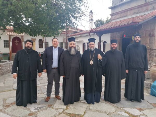 Τέλος, εκ μέρους της Ιεράς Αδελφότητος παρετέθη πλούσια δοχή στην τραπεζαρία της Μονής, προς τιμήν του Σεβασμιωτάτου.