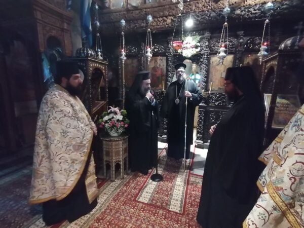 Τέλος, εκ μέρους της Ιεράς Αδελφότητος παρετέθη πλούσια δοχή στην τραπεζαρία της Μονής, προς τιμήν του Σεβασμιωτάτου.
