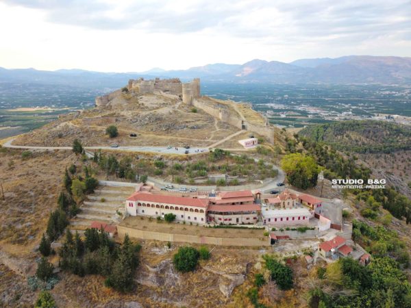 Στο ανατολικό τμήμα της πεντακάθαρης και ολάνθιστης αυλής, που με πολλή αγάπη φροντίζει η μικρή αδελφότητα, μετά από έγκριση της Αρχαιολογίας, το 1970 κτίσθηκε ένας μικρός ναός, αφιερωμένος στην Παναγία τη Γιάτρισσα, στην Αγία Ειρήνη Χρυσοβαλάντου και στην Αγία Μαρία την Αιγυπτία. Αυτός ο ναός κτίστηκε κυρίως, ως πράξη ευλάβειας και τιμής στην Παναγία (Θεοτόκο) του κάστρου, η οποία είχε κτισθεί από τον επίσκοπο Άργους Νικήτα, το 1174.