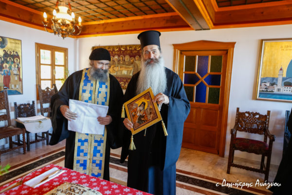 Τον Σεβασμιώτατο υποδέχθηκε με αισθήματα υιικού σεβασμού και βαθυτάτης αγάπης, ο Καθηγούμενος της Μονής Αρχιμ. π. Εφραίμ Τράνακας και τον καλωσόρισε για ακόμη μία φορά στο Μοναστήρι, ενώ τον ευχαρίστησε για την ευλογία της παρουσίας του και για την πατρική του στήριξη, την οποία ο Μητροπολίτης Φθιώτιδος επιδεικνύει με κάθε δυνατό τρόπο.